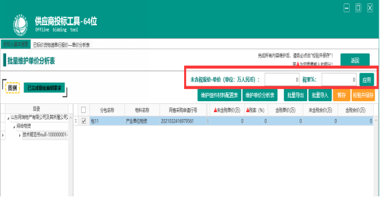 重要提示:离线投标工具价格端口首先维护投标文件基本信息;然后进行报价,在已标价货物清单行报价-单价分析表中的未含税报价-单价根据 采购文件 附件《已标价货物清单行报价暨投标报价汇总表》的合计填写单价或单价和,税率按 采购文件 要求填写;维护单价分析表中将《已标价货物清单行报价暨投标报价汇总表》与开标文件打包压缩后上传,不需要设置密码。